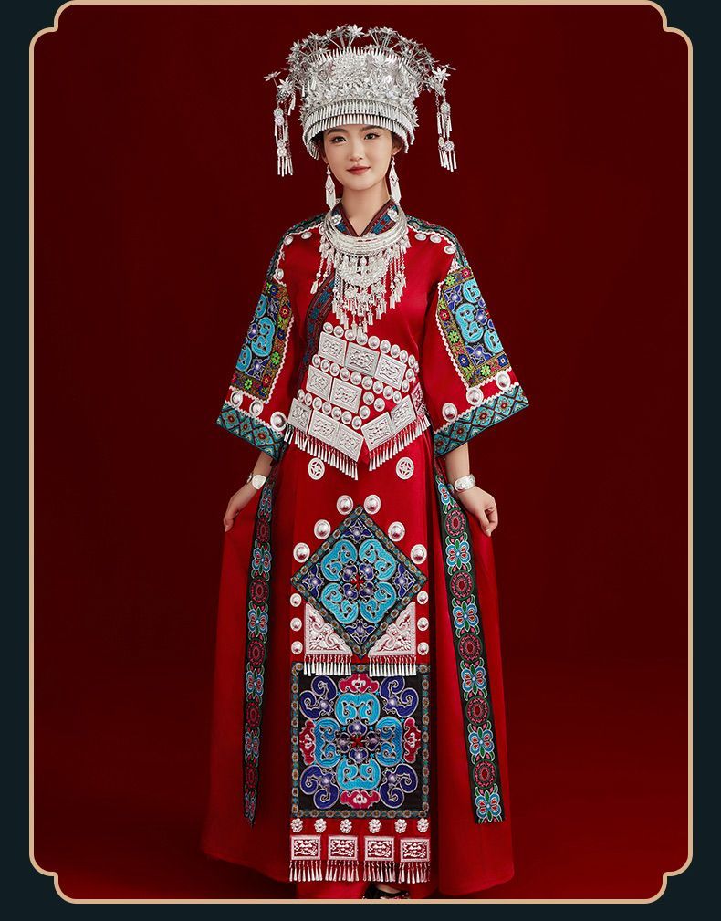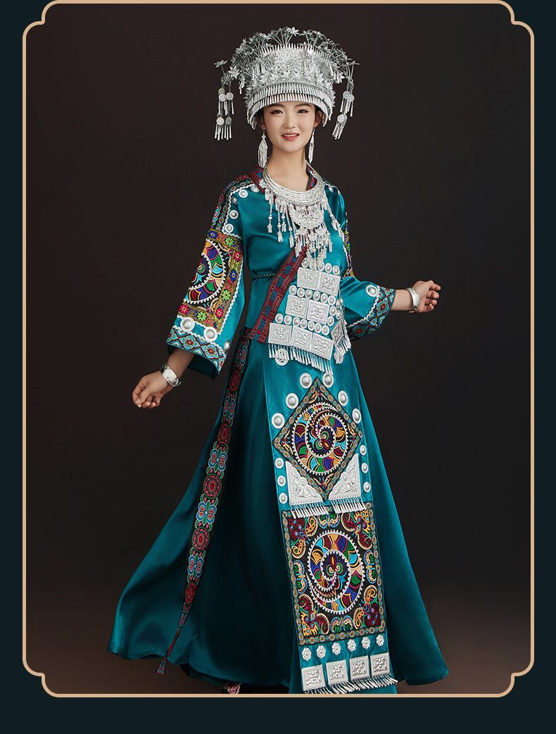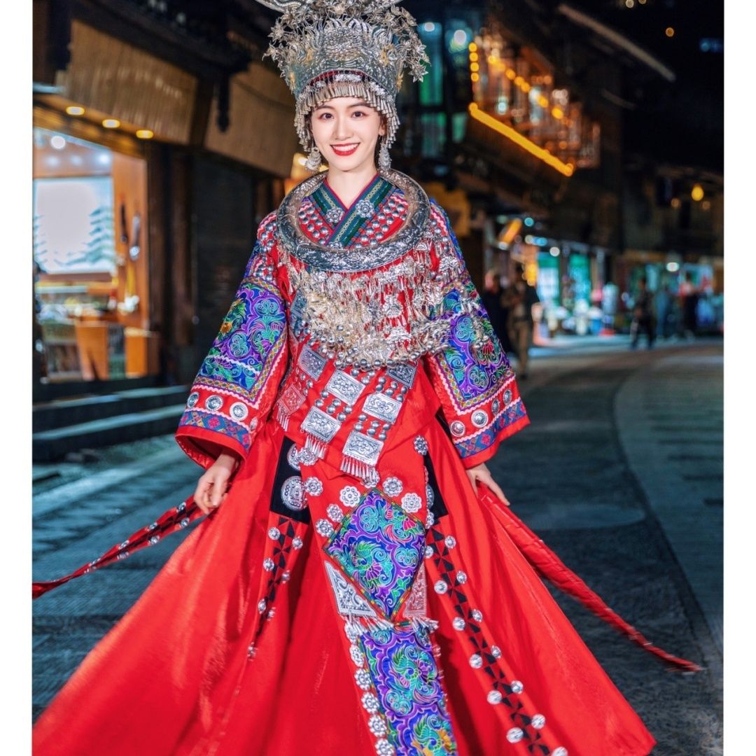 当你想展现沉稳自信和永恒优雅时,就穿上它——这是苗族之美的生动体现。