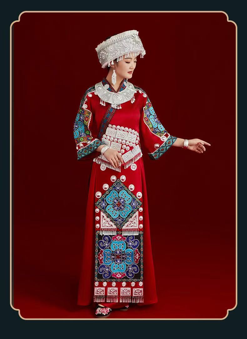 搭配手工制作的银饰,整套服饰既散发着现代的精致感,又蕴含着深厚的文化底蕴。